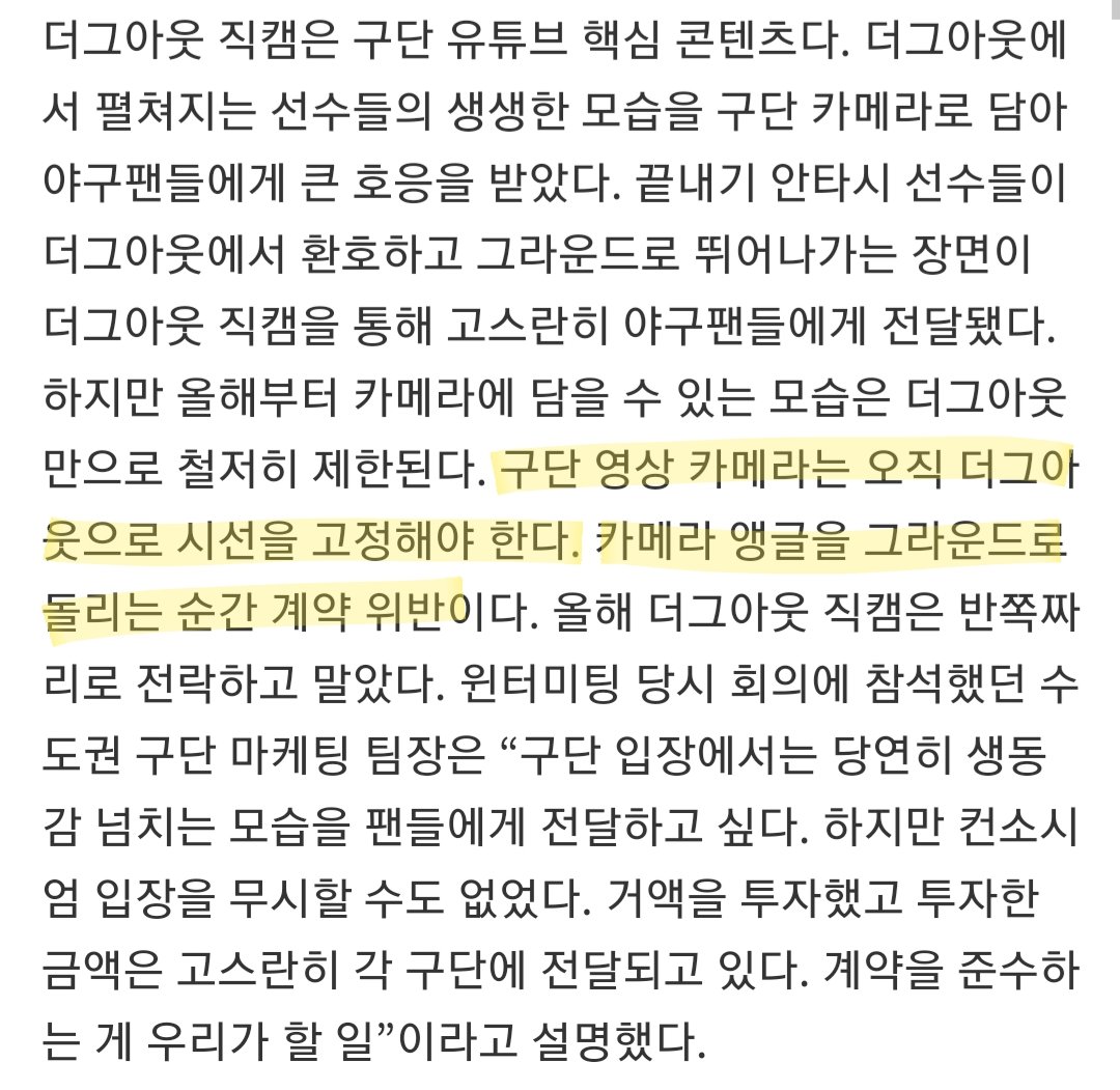 이게 만약 계약위반이면 도대체 뭘 찍으란 말입니까? 선수들 세리머니는 덕아웃에서 하는걸로