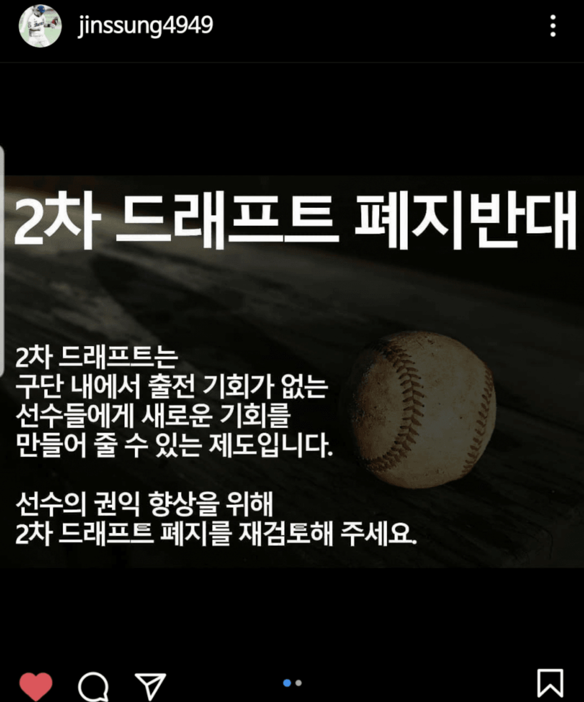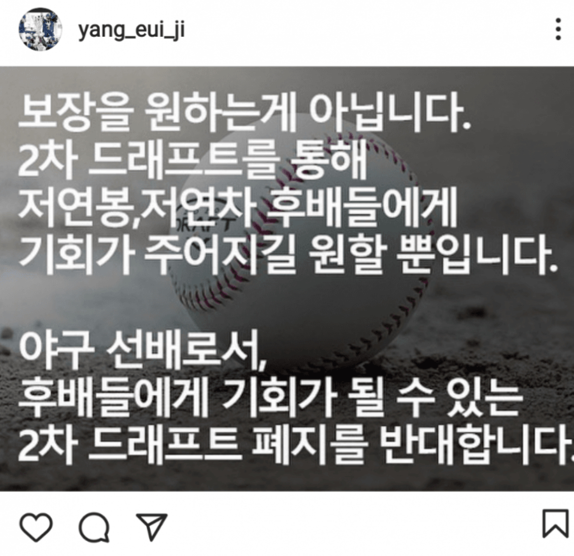 2년에 한 번 기회의 장이던 2차 드래프트가 폐지 되는것에 대해 KBO 선수들이 반대운동을 하고 있습니다.