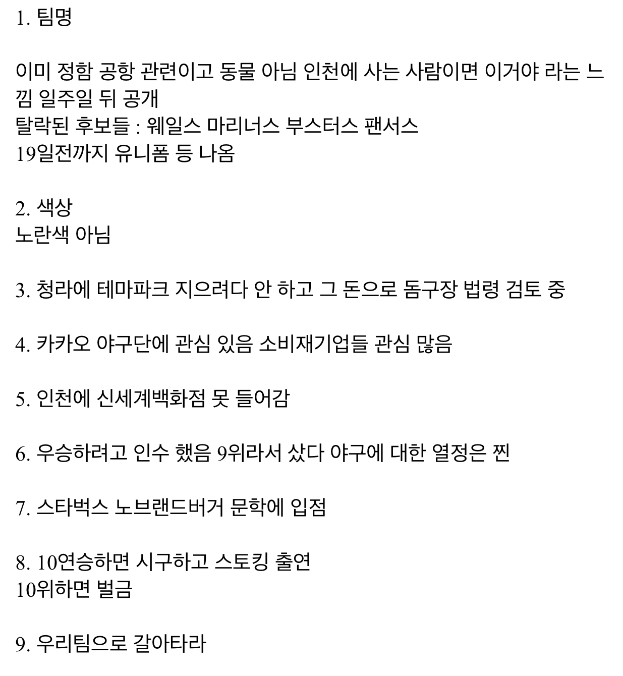 팀명 일주일 뒤 공개, 스타벅스, 노브랜드 등 문학구장 입점예정ㅁㅁ
