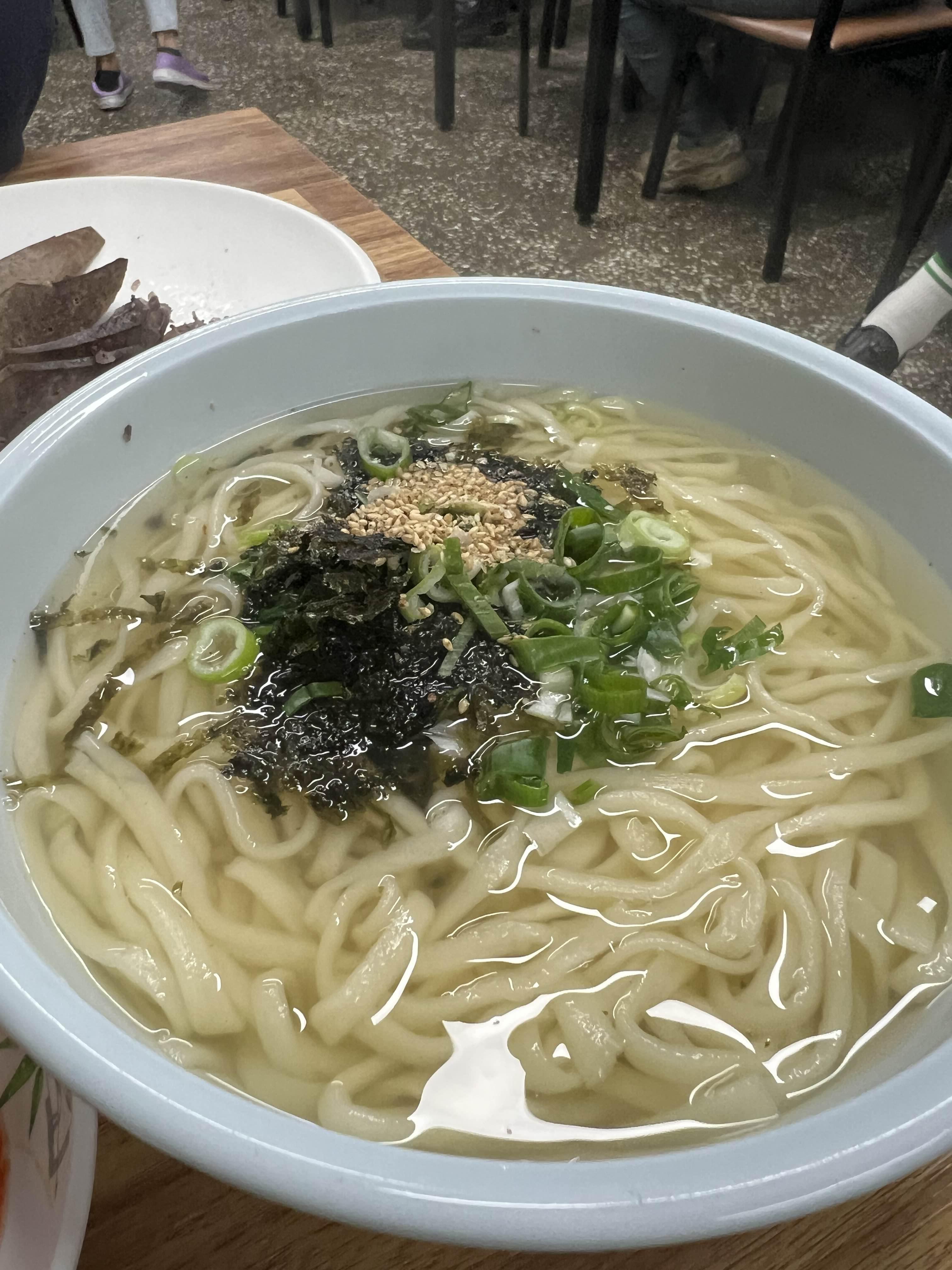 칼국수도 요즘 온천장에서 한그릇 8천원 하던데 이건 5천원짜리 양이 아니다. 면은 주문과 동시에 기계로 뽑아서 육수를 붓고 김, 파가 올려진채로 나오며 양념장은 기호에 맞게 넣어 먹으면 된다.