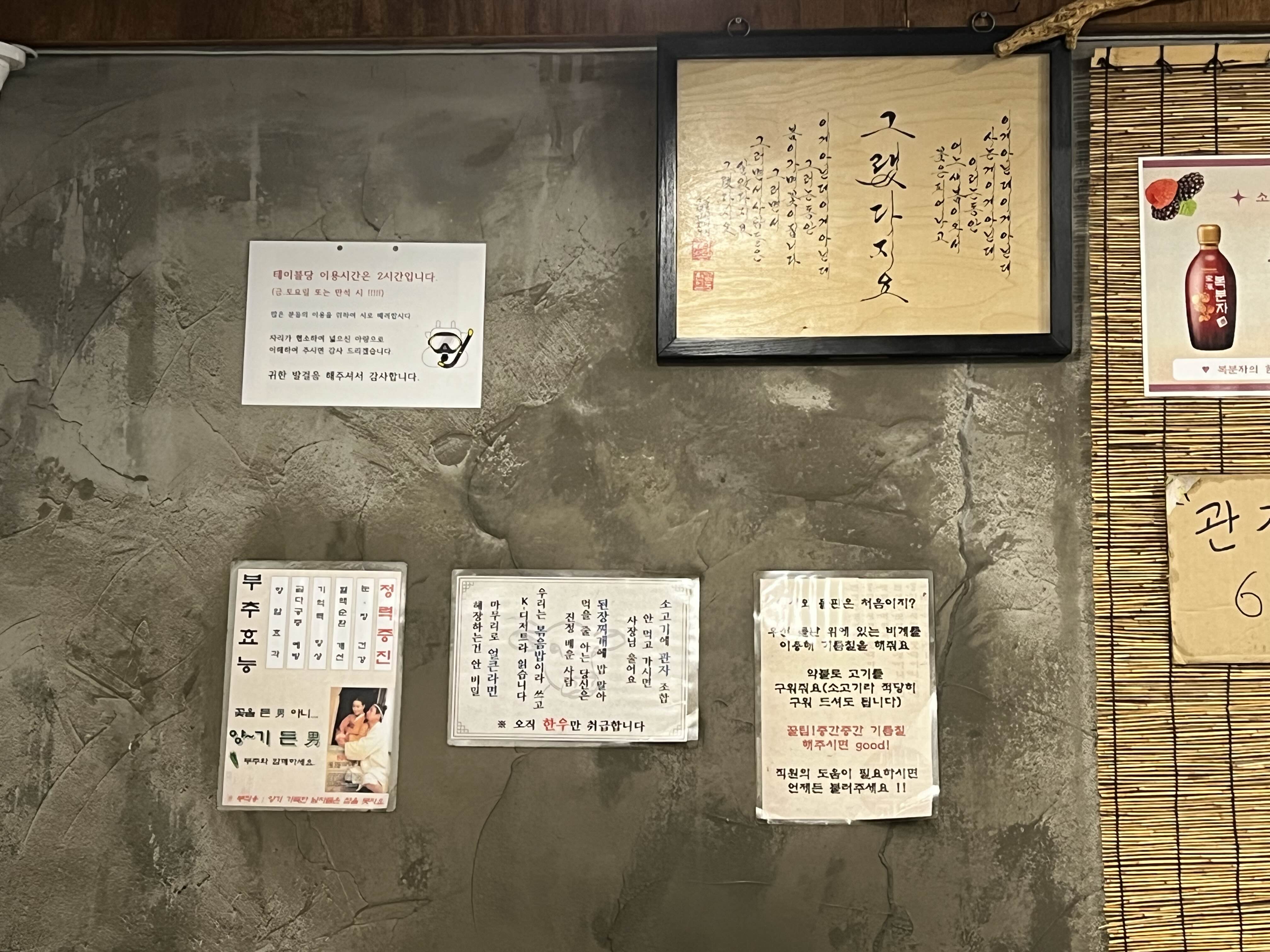 입구 벽에는 롯데 나승엽, 진승현 등 야구선수들 사인이 붙어 있었다. 고깃집에서 자만추하면 이날 고깃값 뽑는거나 마찬가지일듯 싶다.