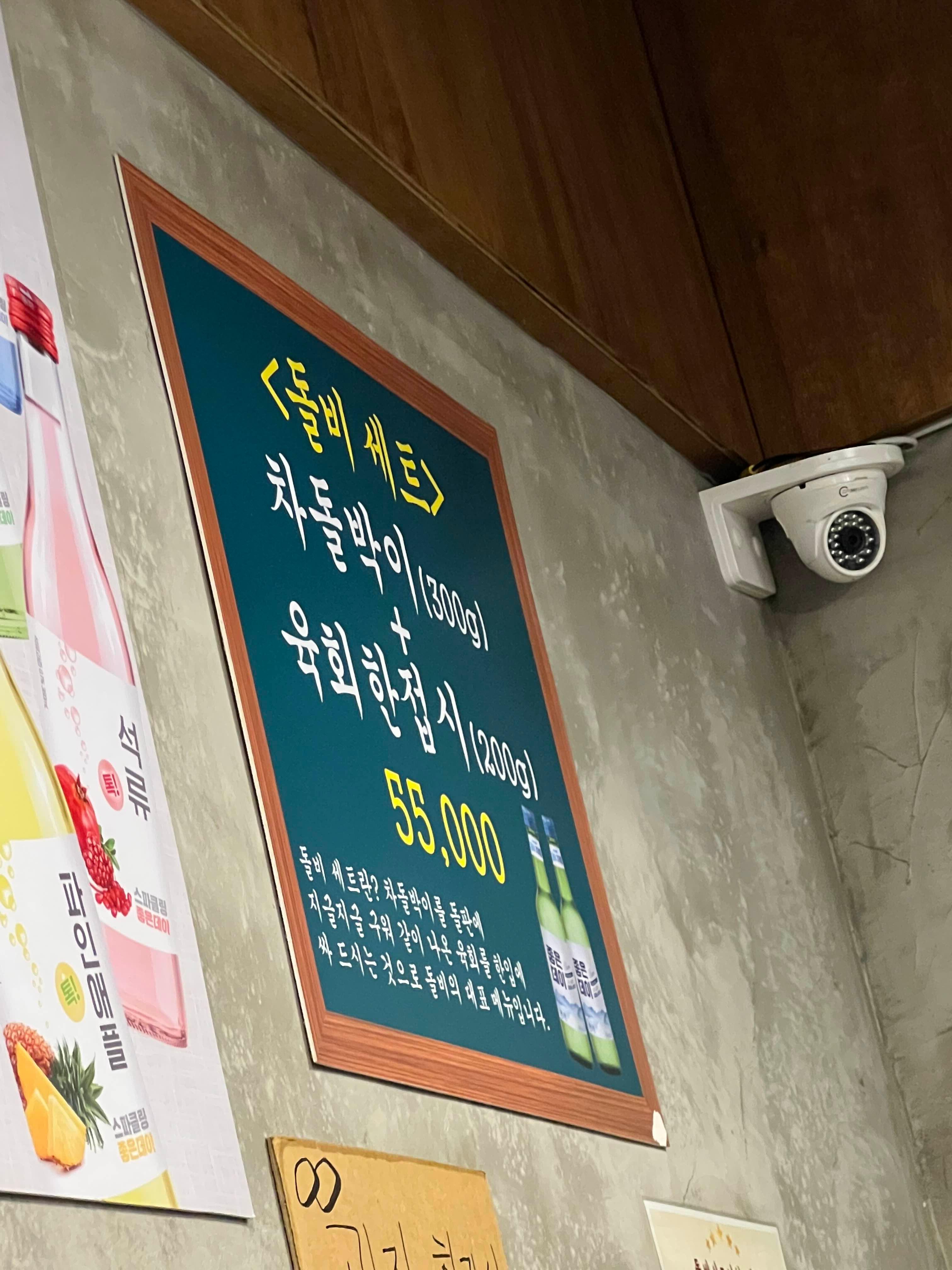돌비 세트란? 차돌박이를 돌판에 지글지글 구워 같이 나온 육회를 한입에 싸 드시는 것으로 돌비의 대표메뉴입니다. 라고 적혀있다.