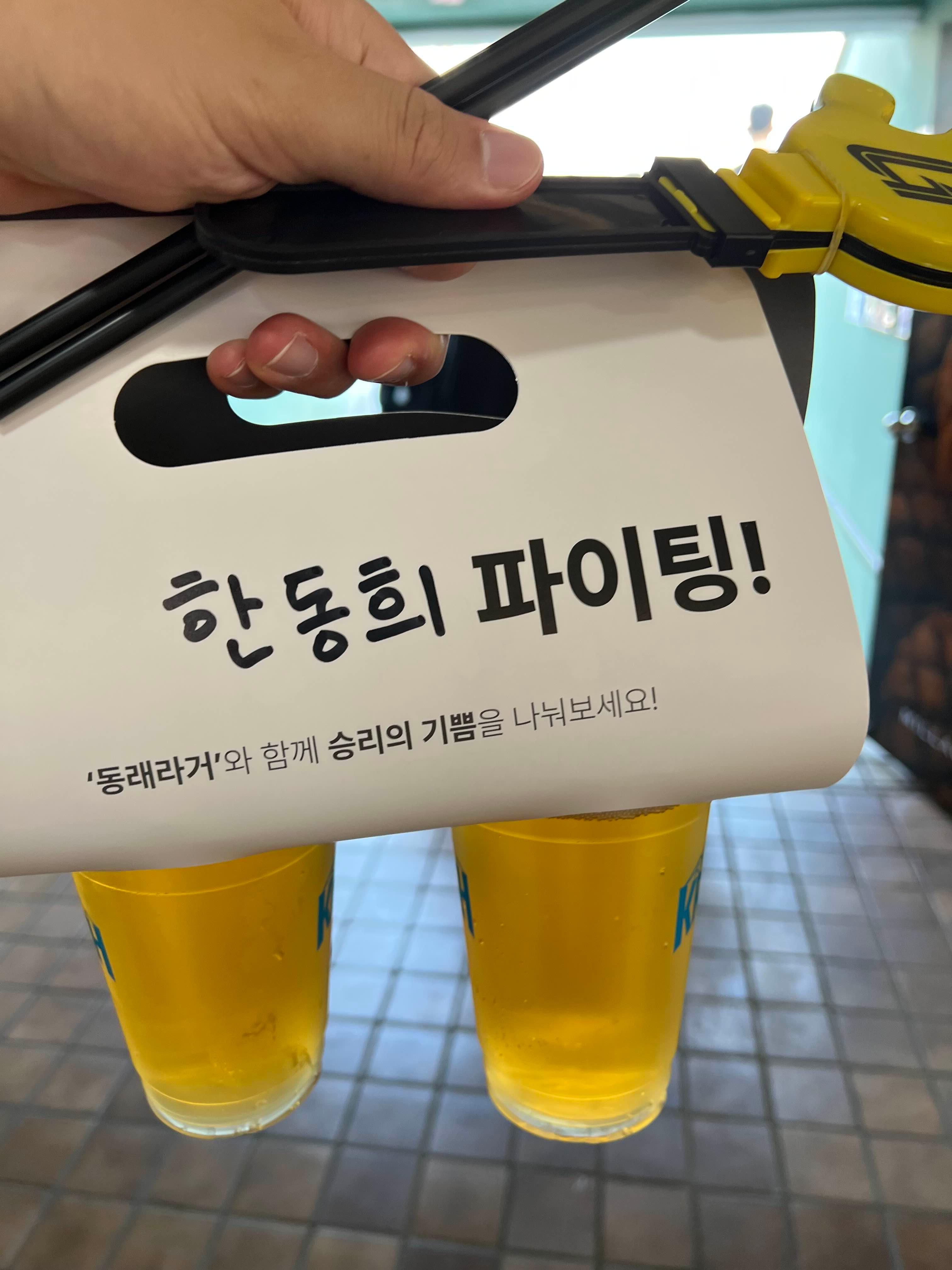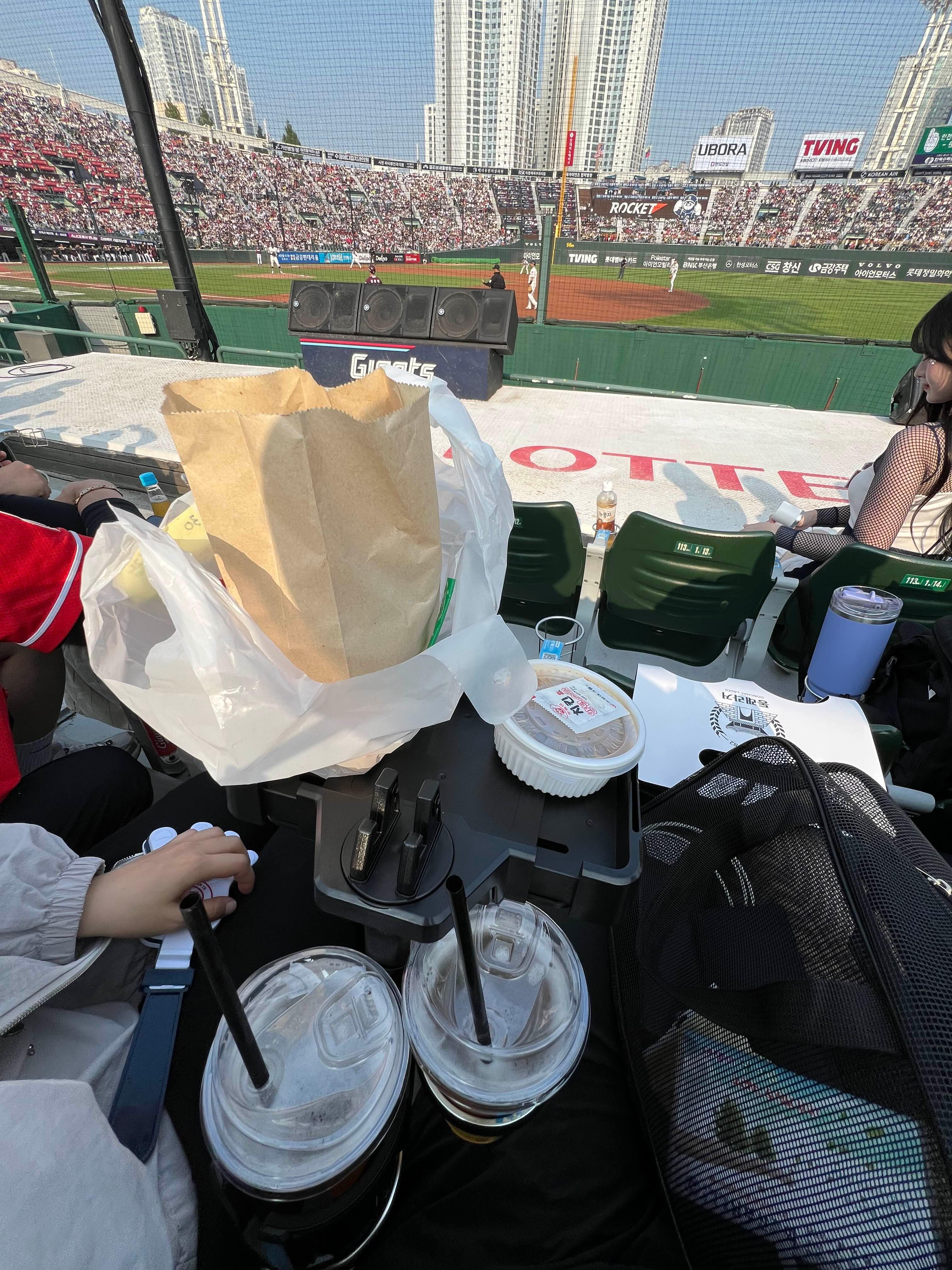 야구장 테이블석을 잡지 못하면 일반석을 앉게 되는 경우가 많은데 음식이나 음료를 두기가 매우 번거롭다.